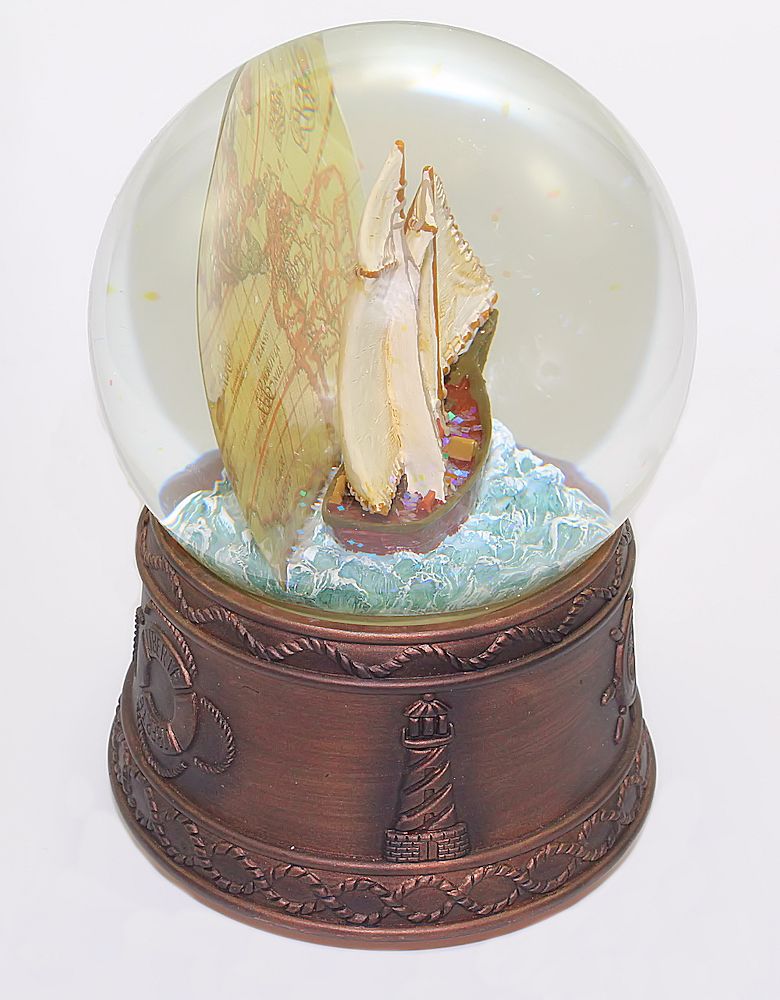 Durch Schütteln der Kugel wirbelt der Glitter herum.