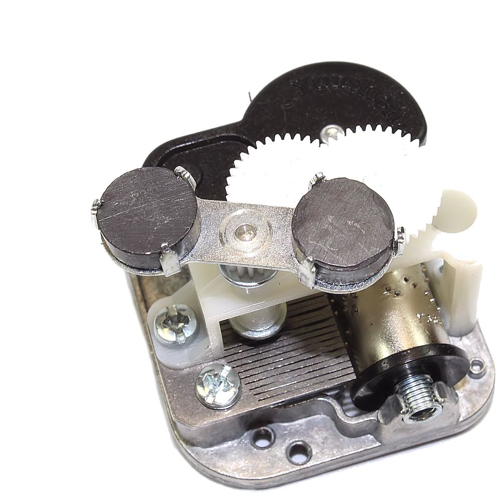 Dieses Spielwerk hat einen Aufsatz mit zwei Magneten.