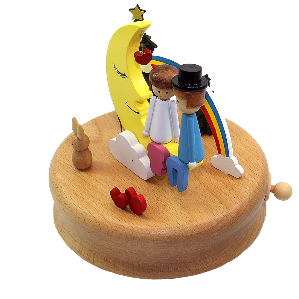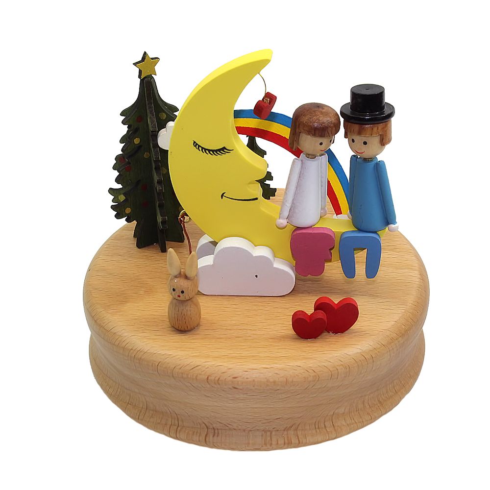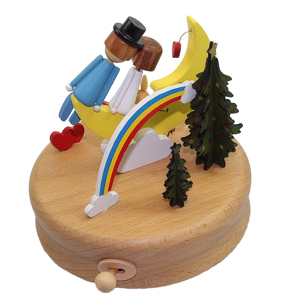 Beim Abspielen der Musik bewegt sich der Mond mit dem Liebespaar rauf und runter.