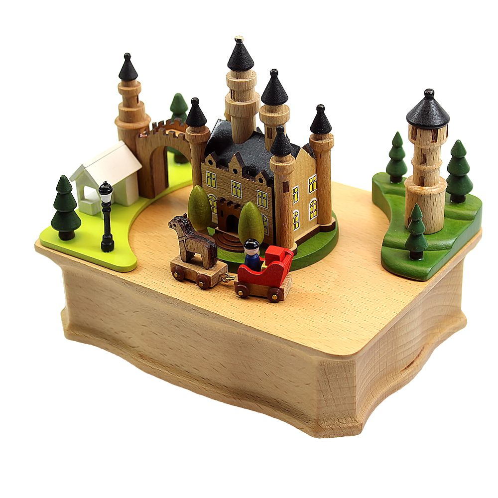 Beim Abspielen der Musik fährt die Pferdekutsche um das Schloss.