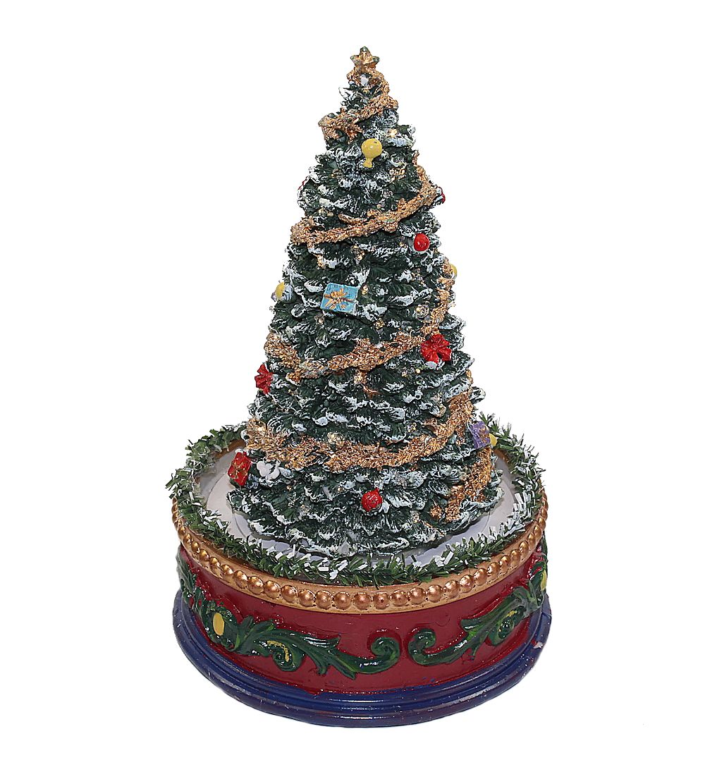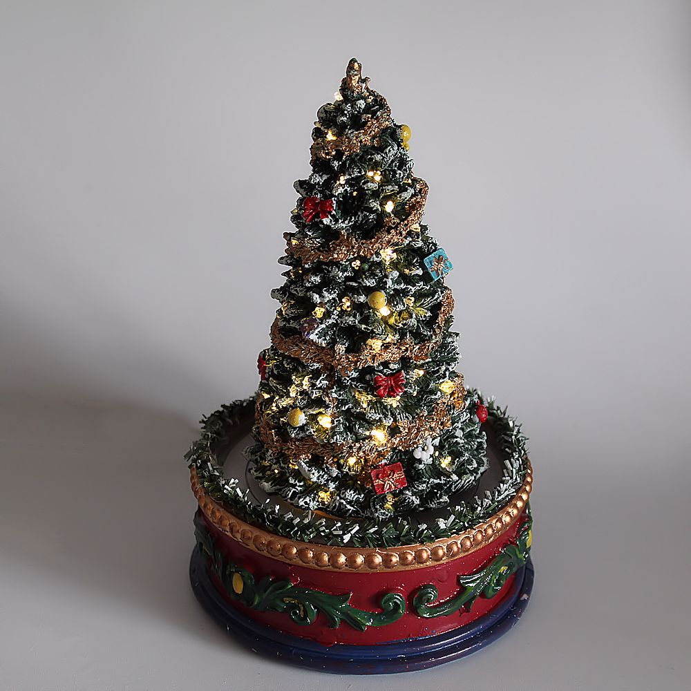 Der ganze Weihnachtsbaum ist beleuchtet.